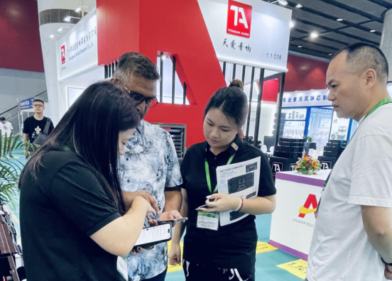 在这盛大国际舞台上,同学们充分调用所学的专业知识和技能,用一口流利的英语自信地向境外采购商展示中国的音响设备等产品,耐心地解答客商的疑问,协助参展商促成交易。她们的工作态度和工作能力都得到了参展企业的高度认可。