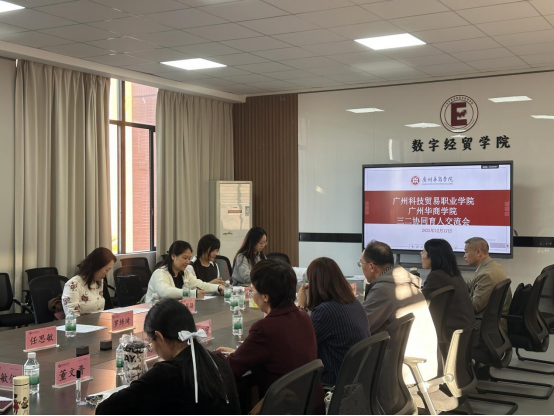 12月17日下午,广州华商学院数字经贸学院与广州科技贸易职业学院商贸学院的专业研讨会在创新楼518会议室如期举行。两校教师代表围绕三二分段专升本协同育人转段考核方案、人才培养方案等核心议题展开深度研讨,以精准对接促衔接,以细化方案保质量,为合作项目的稳步推进筑牢根基。