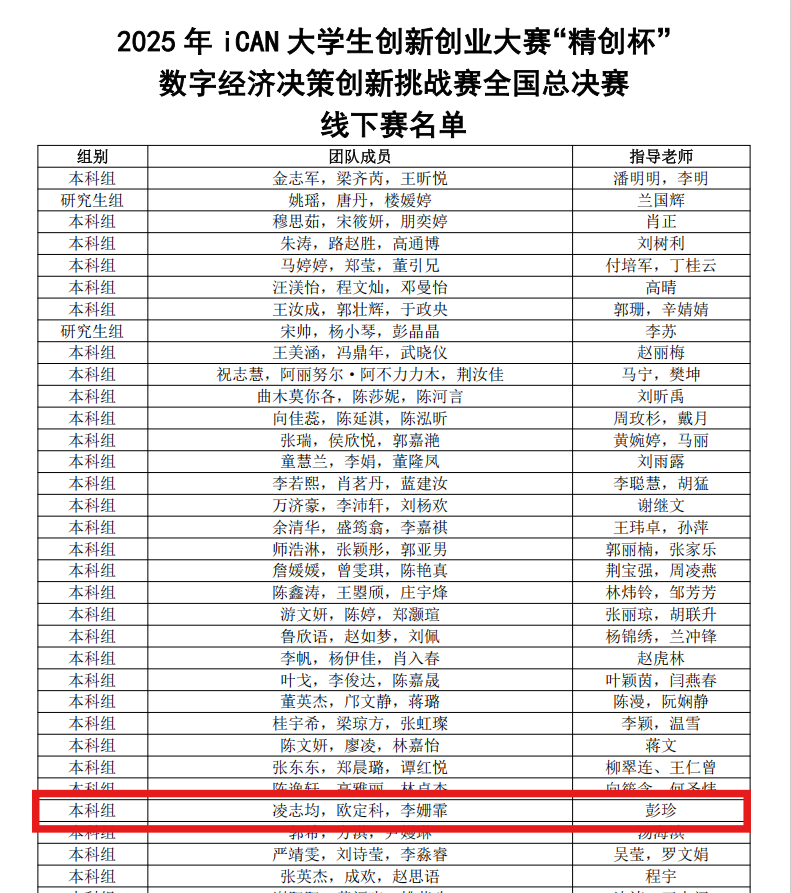 以赛促学显成效,产教融合育英才——数字经贸学院学子在iCAN全国数字经济决策创新挑战赛中斩获佳绩