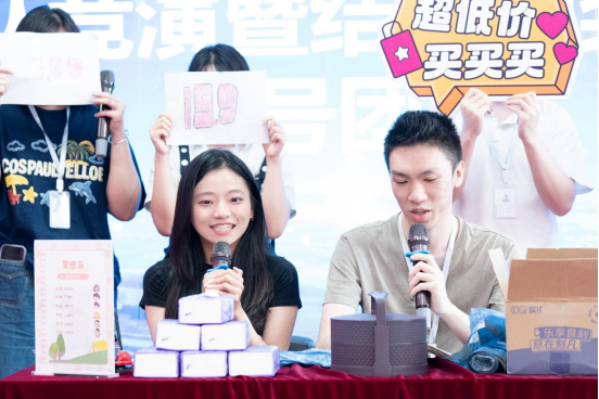 结营仪式的核心环节为各实训小组的精心策划的路演展示。参与者以项目负责人的身份出现,依次上台,通过充满活力的模拟直播,全面而精确地呈现了实训成果。他们所展示的成果不仅包括显著的销售数据和流量增长,还包括对市场策略、用户心理和内容创意的深入分析与实际操作的检验。在台上的表现,他们展现了自信和专业,生动地体现了理论与实践相结合的显著进步,获得了校企导师们的一致好评。