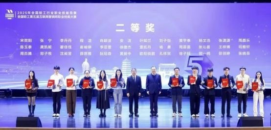 据悉,本次大赛由中国轻工业联合会、中国财贸轻纺烟草工会联合主办,以“数字赋能・云端筑梦”为主题,是轻工行业推动数字营销人才选拔与产业升级的标杆赛事。大赛分市(地)级选拔赛、省级预选(专项)赛、全国总决赛三阶段,累计近2.9万人参与赛前动员,1.5万余名选手参加市级选拔赛,3465人晋级省级预赛。最终经“理论考核+实操竞技+综合评审”三维评价体系选拔,281人进入决赛,共决出18名一等奖、36名二等奖、63名三等奖。