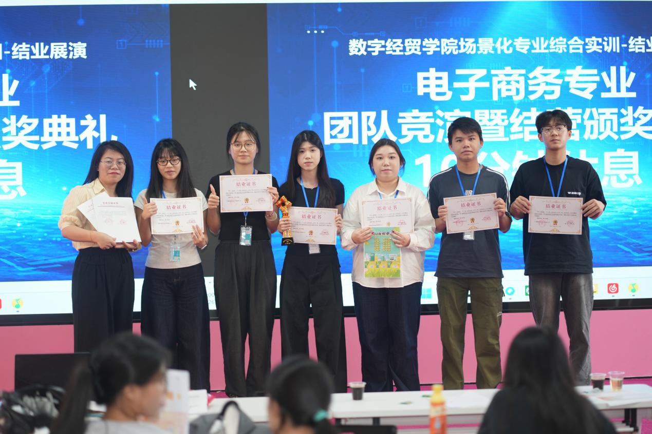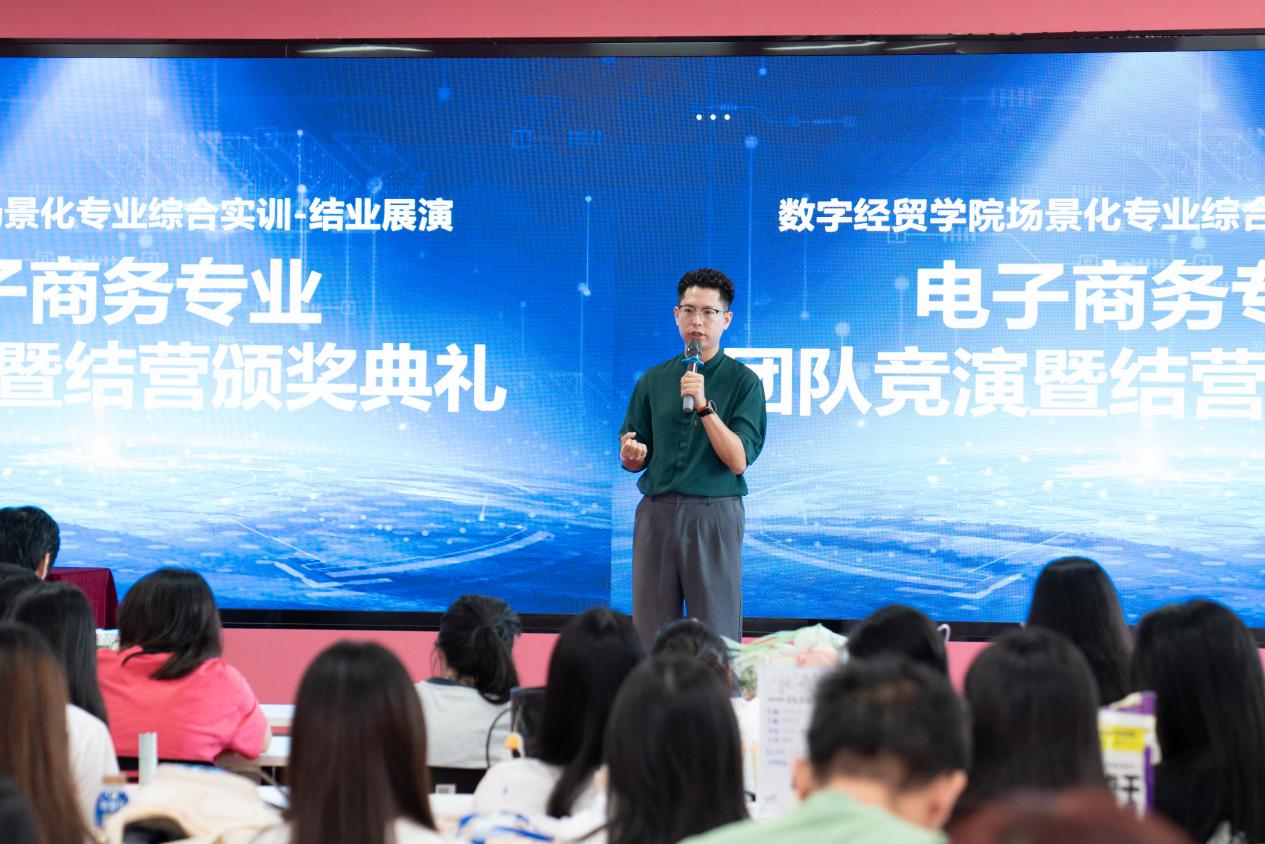 2025年9月26日,广州华商学院数字经贸学院与广州桃花岛电商咨询有限公司联合举办的场景化专业综合实训课程结营仪式在创科楼713隆重举行。本次结营典礼旨在总结四周以来的项目成果,表彰优秀学员及团队,发挥榜样示范引领作用,激励全体成员以更饱满的热情投入后续工作。此次活动既是对过往成绩的总结与肯定,也是对场景化专业综合实训课程未来发展的展望,为开启新征程凝聚力量,推动产教融合课程向着更高目标迈进。