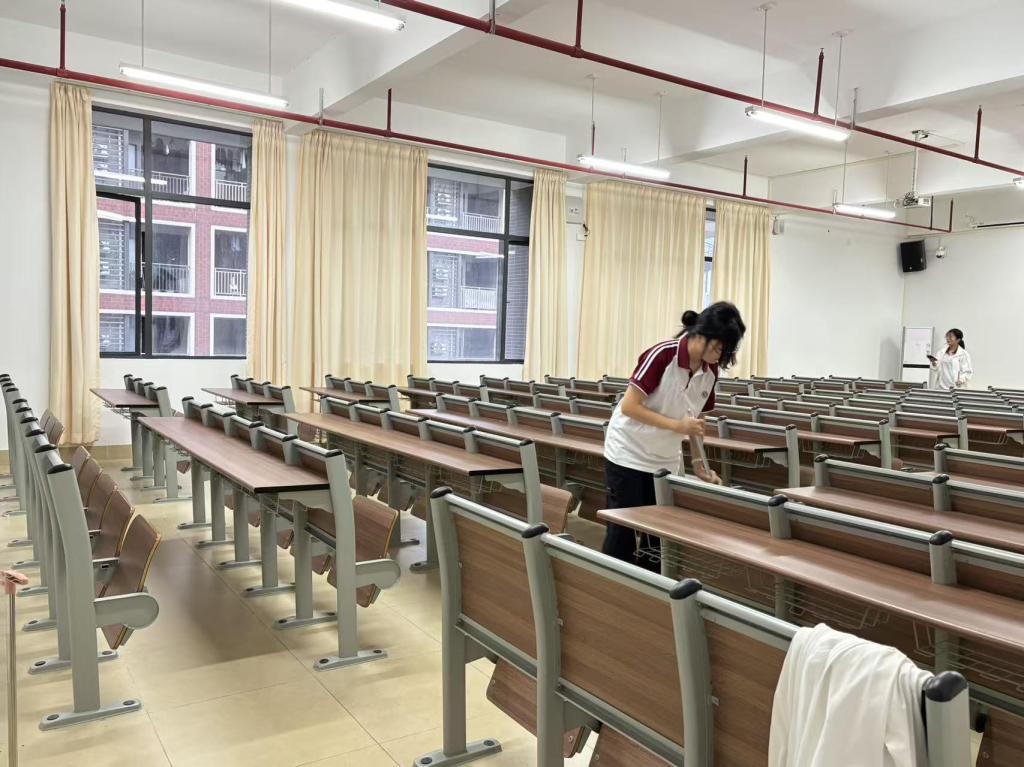 本次活动以常态化教室清洁为载体,围绕“立德树人”根本任务,深入贯彻党的二十大精神,将劳动教育与文明养成相结合。每周四下午,志愿者们准时集结于肇庆校区8楼四层,分组对教室地面、桌椅、黑板、门窗等区域进行全面清扫。尽管秋风微凉,但志愿者们热情不减,认真细致地完成每一项清洁任务,用双手营造出整洁明亮的环境。